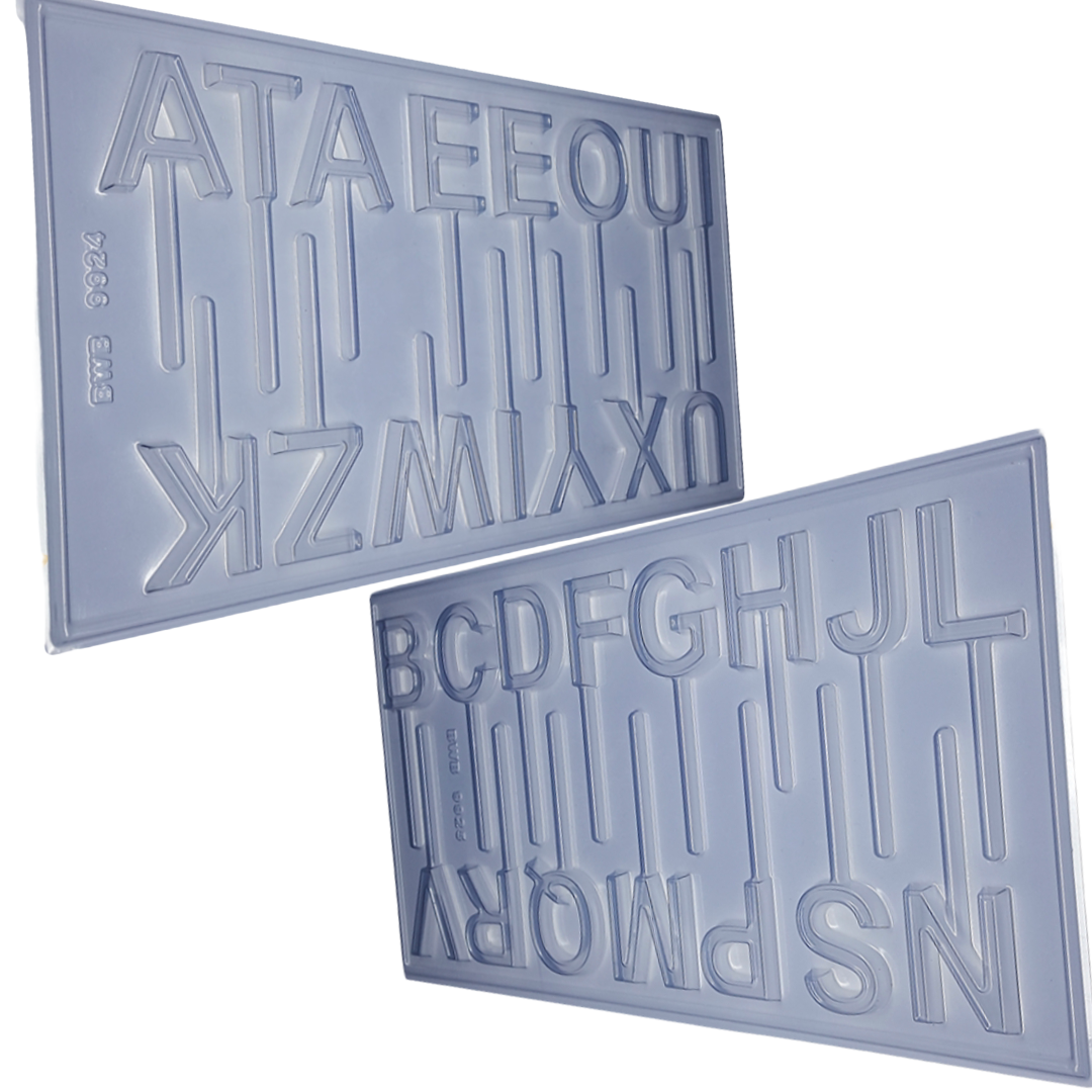 Molde en PET de la más alta calidad con forma de alfabeto con ranura para palito , las medidas de cada letra son aproximadamente de 5,5 cm de alto, hay variaciones . Este molde contiene las 2 placas como se muestra en la imagen ! Este estilo de molde Semi profesional es de 1 sola pieza, es un molde simple. Fabricado por: BWB Embalagens Hecho en Brasil NO ES APTO PARA LAVAVAJILLAS. NOTA: Antes y después de cada uso del molde, limpiar con un paño húmedo en agua tibia, luego dejar secar. Nunca use detergente, jabón o esponjas. Entre aplicaciones, simplemente limpie su molde con una toalla de papel de alta calidad. Para una vida más larga, mantenga su molde alejado de la luz solar directa y no lo exponga a temperaturas superiores a 35 grados. NO APTO PARA LAVAVAJILLAS.